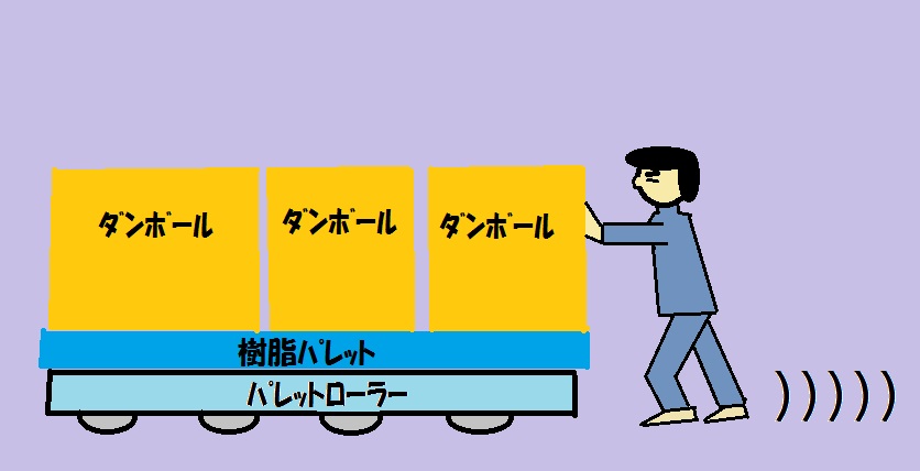 パレットローラーの上に重量物を載せて移動させることができます。地面をコロコロと転がります。